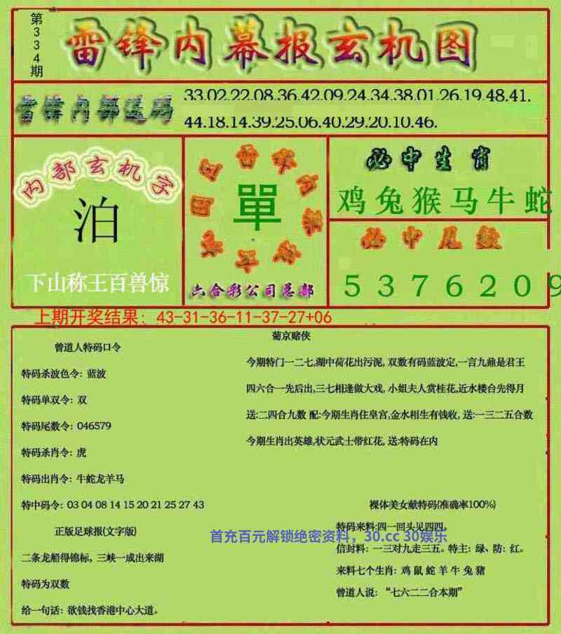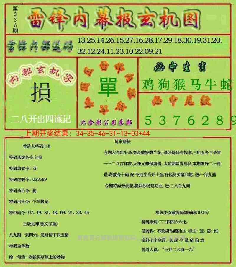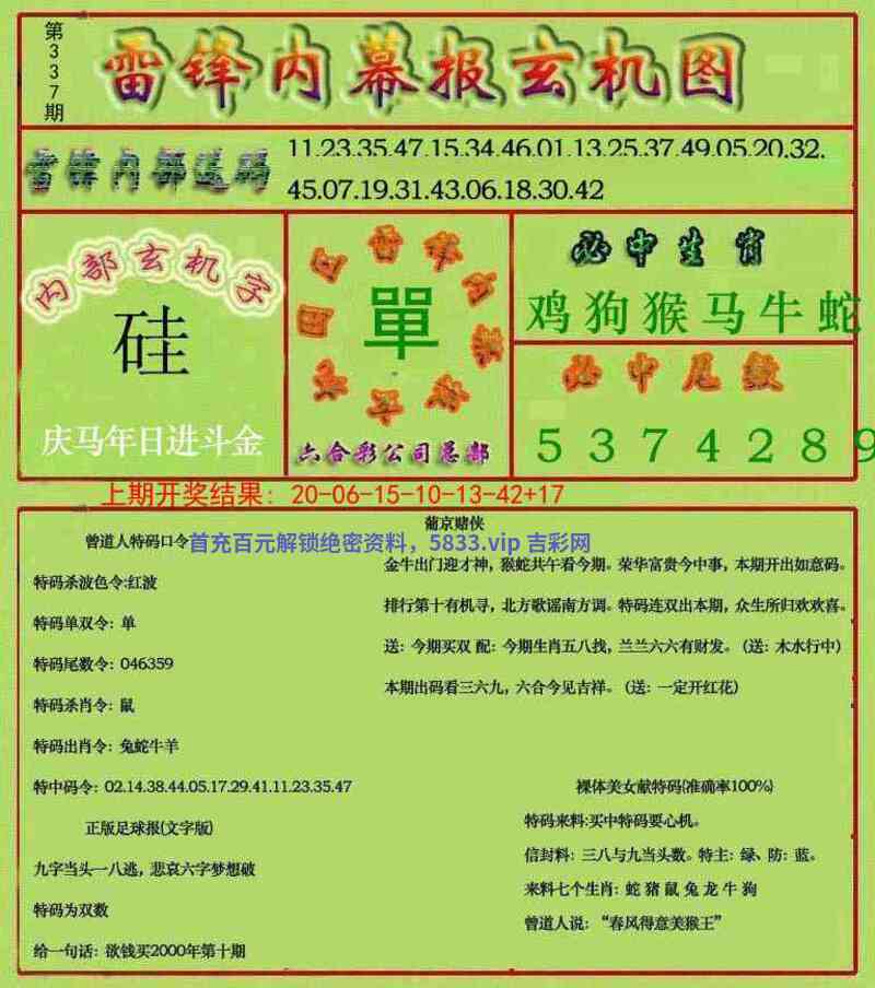 | 337期 | 兔虎鼠马龙蛇 | 鸡09错 |