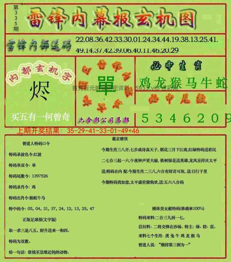 | 335期:5段中特【1.3.4.6.7段】开:狗44准 |